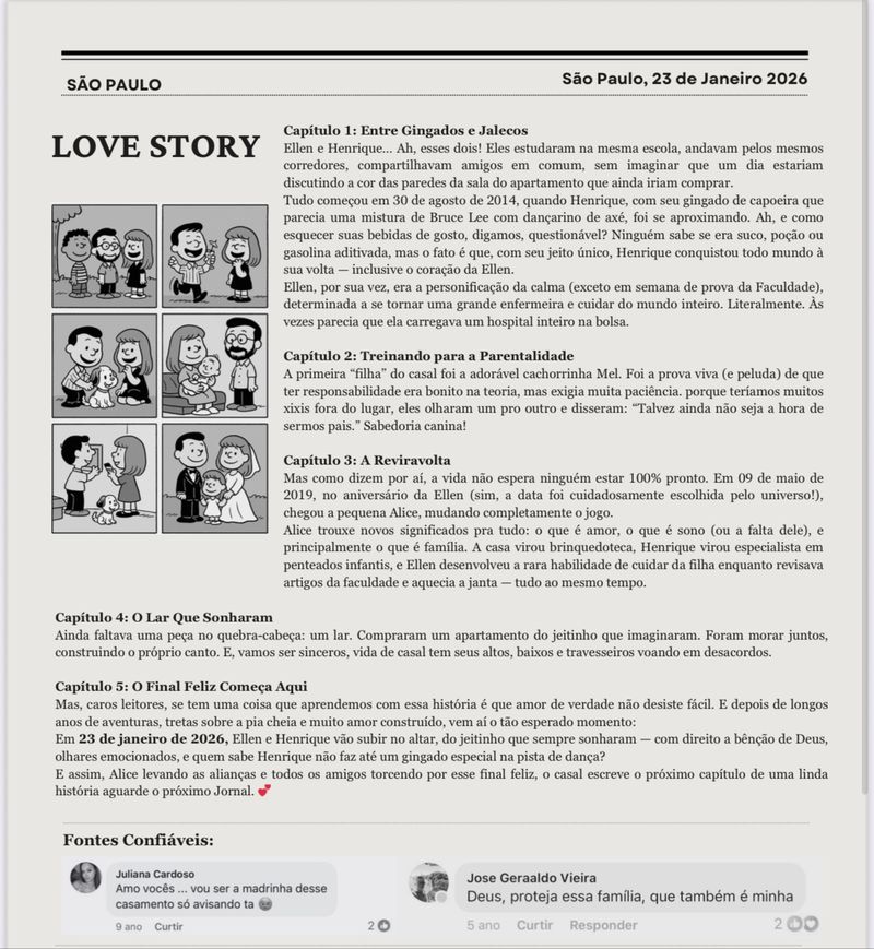 Em 23 de janeiro de 2026, Ellen e Henrique vão subir no altar, do jeitinho que sempre sonharam — com direito a bênção de Deus,